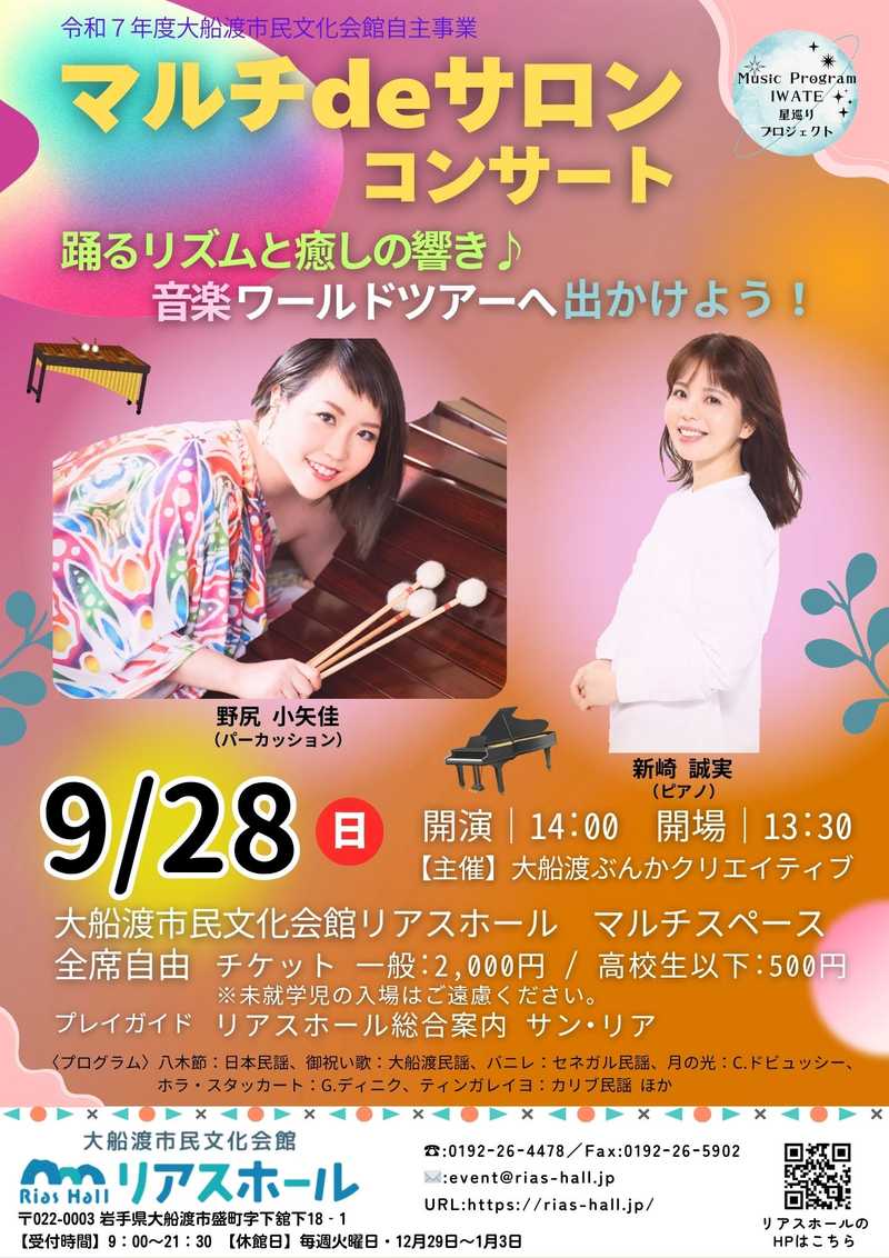 お問合せ 大船渡市民文化会館 ☎:0192-26-4478 FAX:0192-26-5902 メール:event@rias-hall.jp